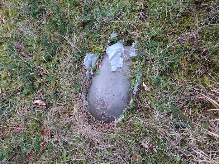 abgebaut. Betonklotz mit Wellblech im Wald.