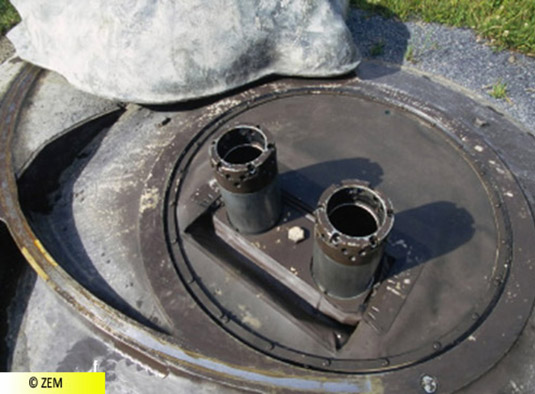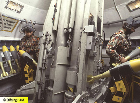 Ab 1973 erfolgte der Bau von unterirdischen 12-cm-Festungsminenwerfern (Doppelgeschütze) Fest Mw 59/83.